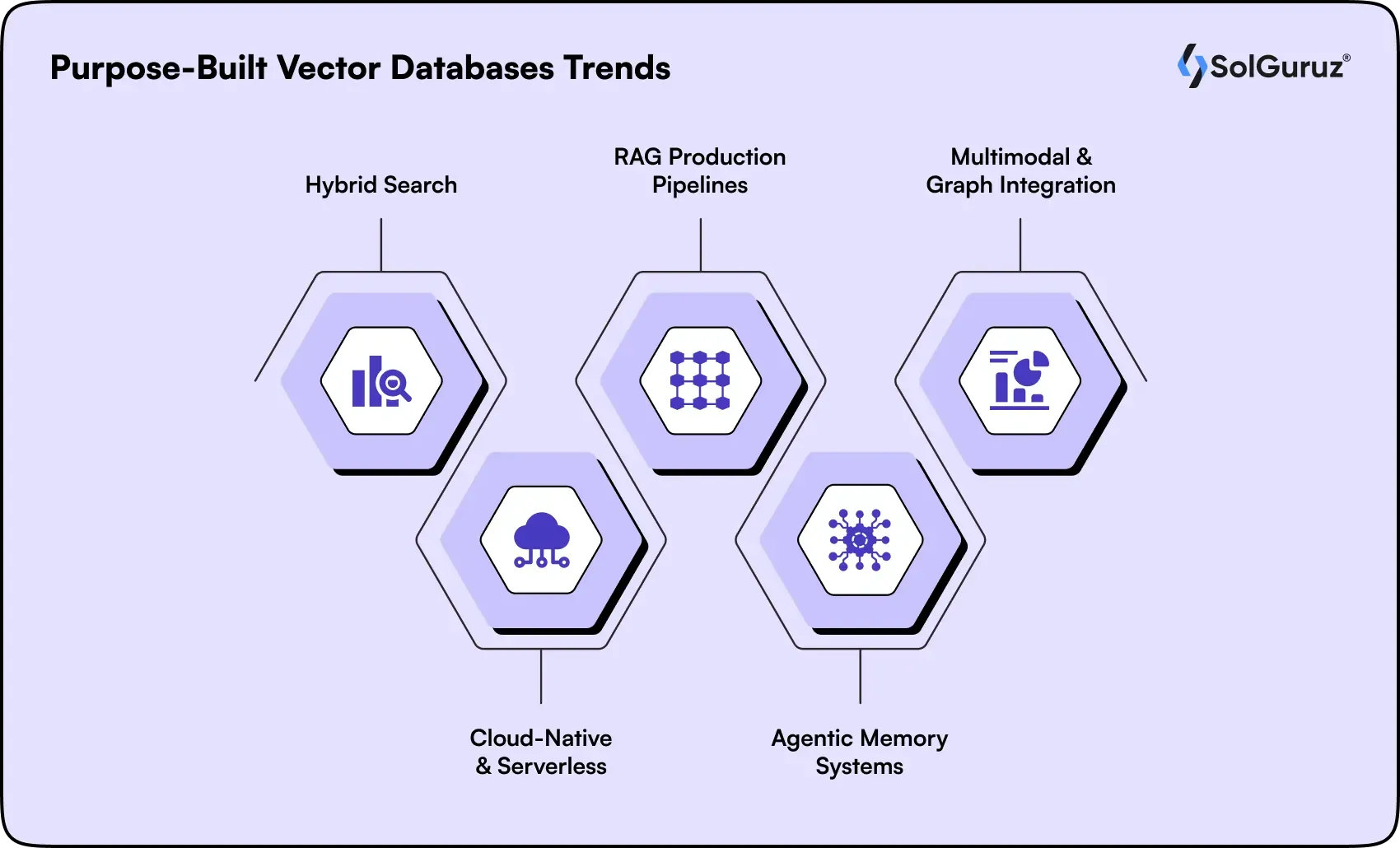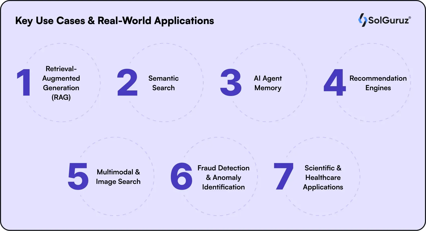 Vector databases form AI's semantic memory layer, enabling RAG pipelines, agent systems, and multimodal search at production scale. SolGuruz helps teams implement battle-tested vector database architectures, from pgvector prototypes to Pinecone/Qdrant deployments that handle real business loads.